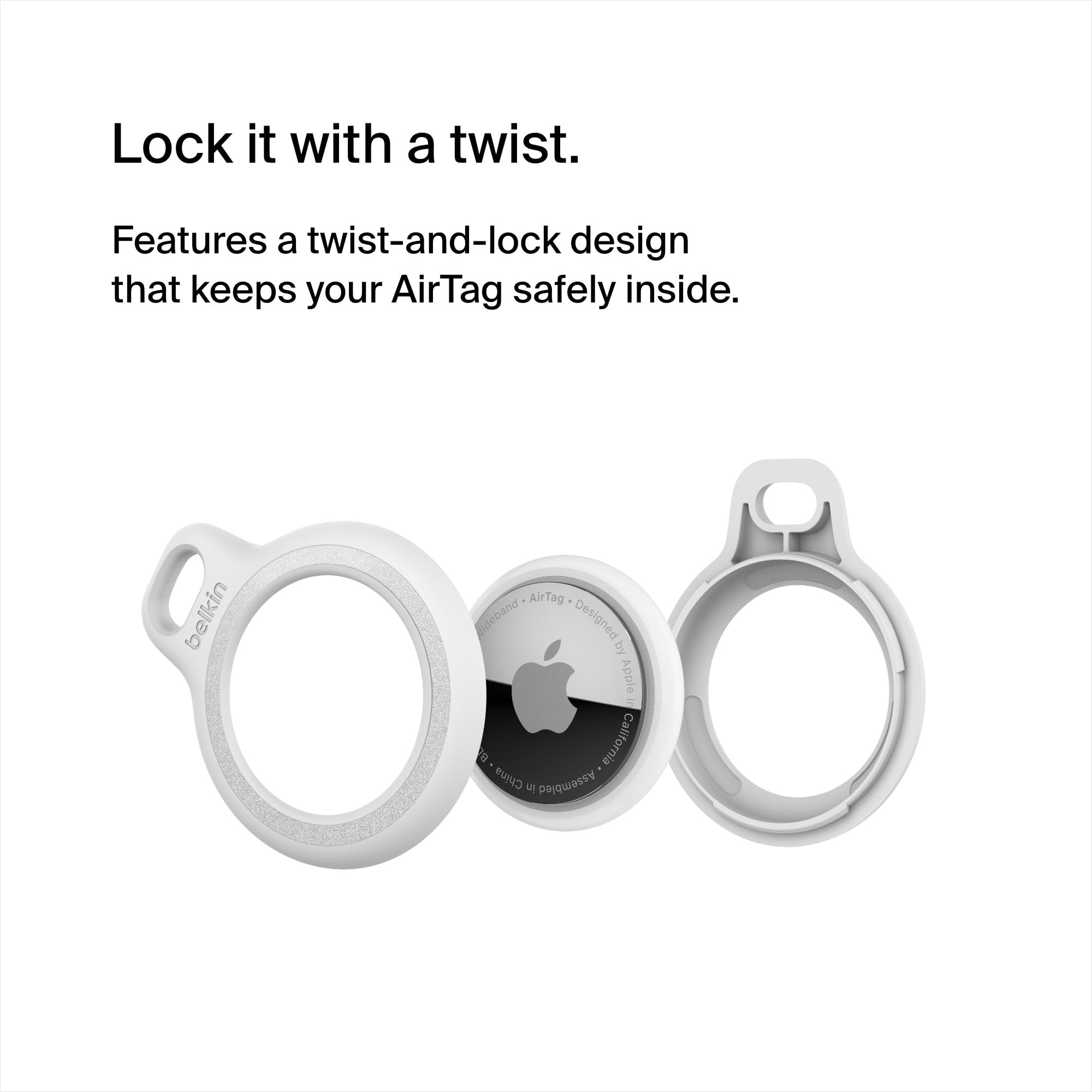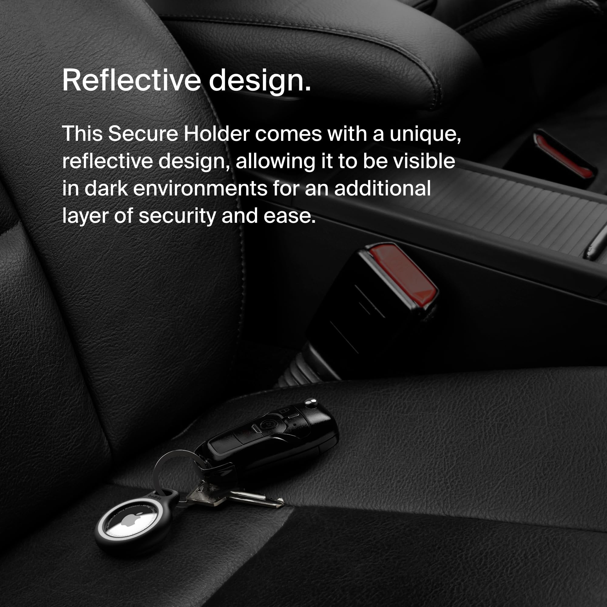 - DURABLE & DEPENDABLE: The Belkin Reflective AirTag case is cleverly crafted with a twist-and-lock design that keeps your AirTag safely inside the secure holder, while its sturdy & secure key ring easily attaches to bookbags, purses, and other belongings.