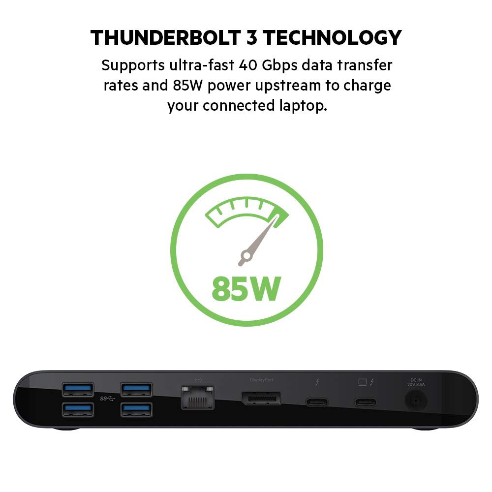 POWER TO SHARE: This charging dock is the perfect way to keep your laptop powered up and ready to go. With its included 170W power supply unit, the Thunderbolt 3 Dock Pro can provide up to 85W of power for a connected laptop. Also known as "upstream charging," this keeps your laptop charged while in use, without a separate power cable.