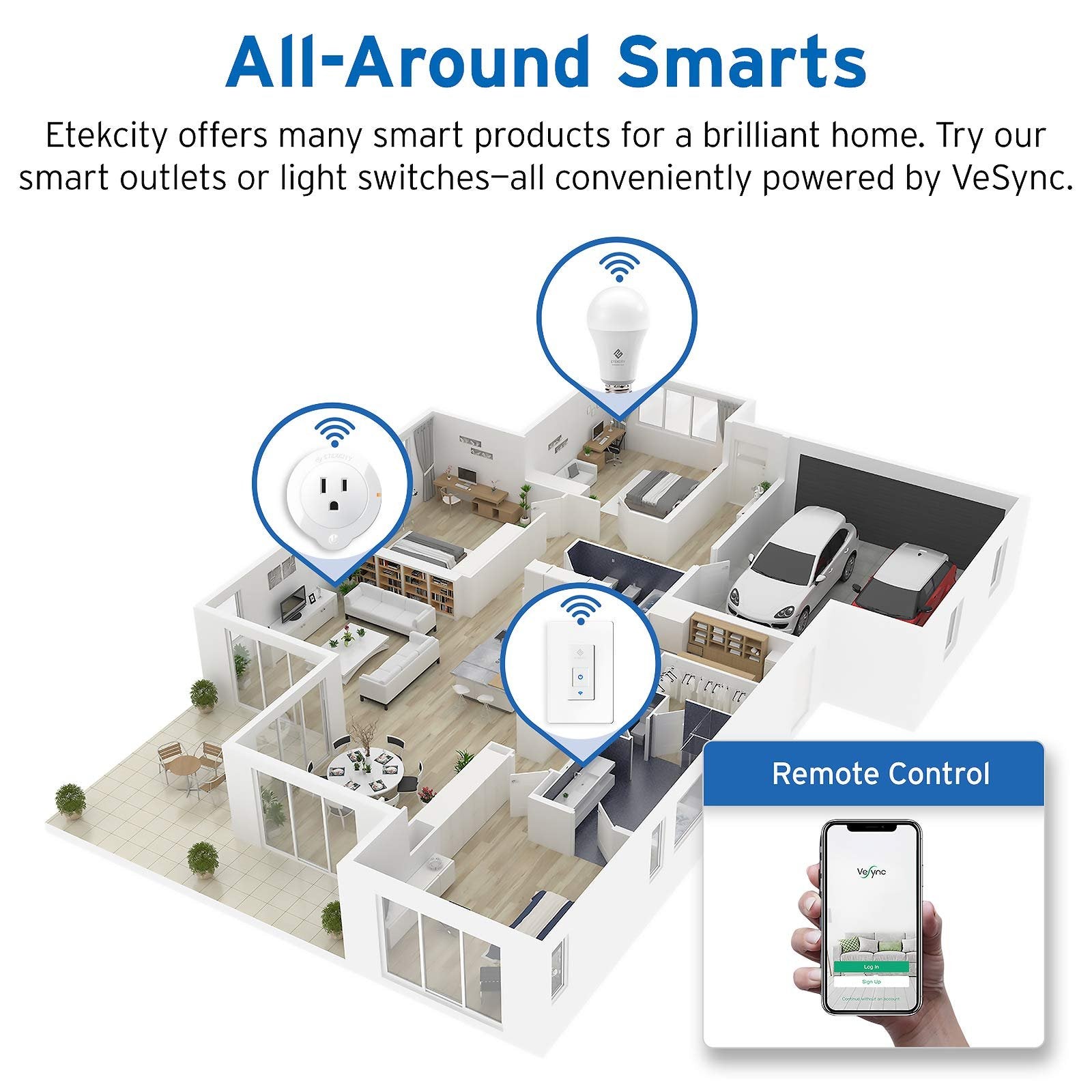 Etekcity ESL100 Smart Light Bulb Works with Alexa, Google Home and IFTTT, 4 Count (Pack of 1), 9W (60W Equivalent), 806LM, 2700K, No Hub Required, 4 Pack