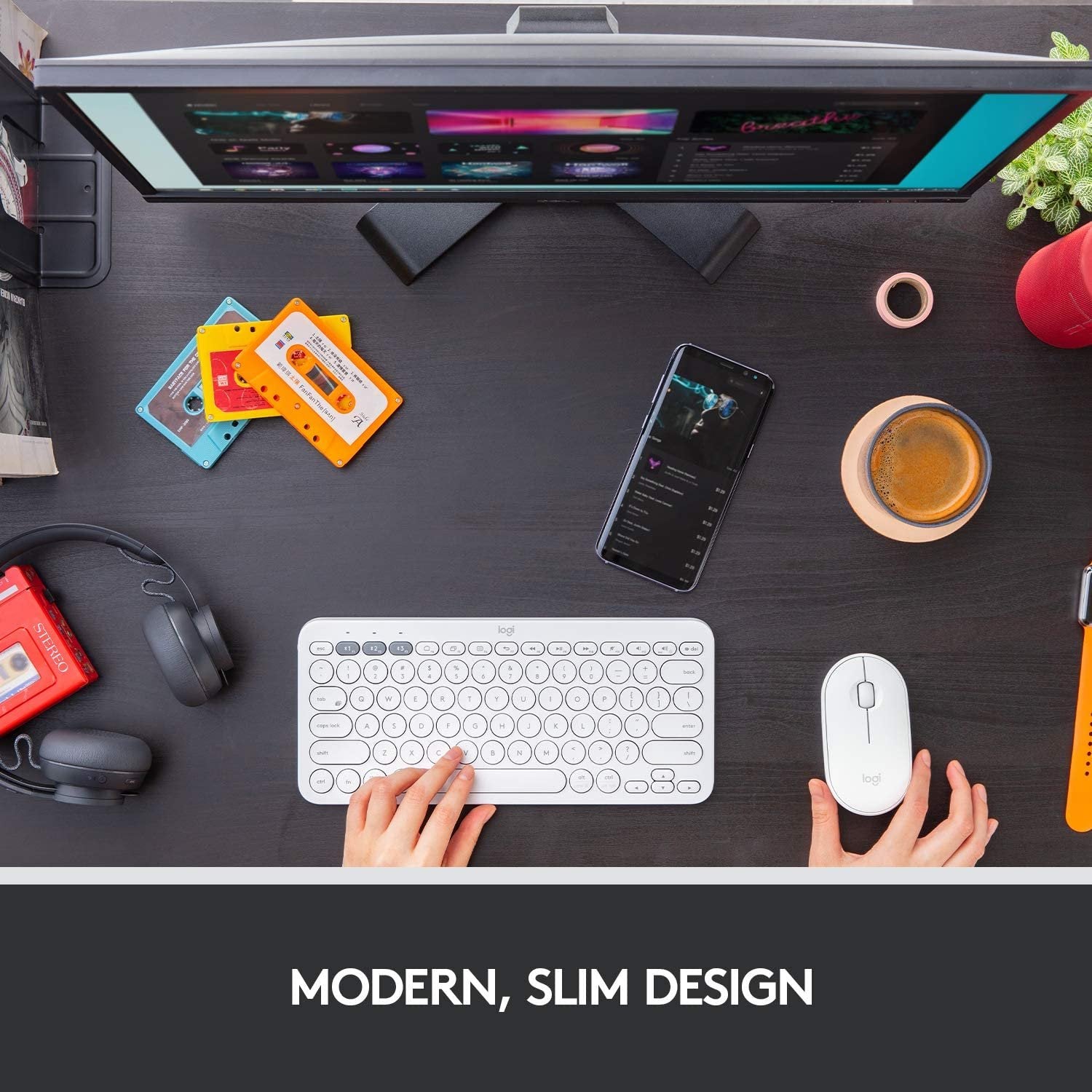 Logitech Pebble M350 Wireless Mouse with Bluetooth or USB - Silent, Slim Computer Mouse with Quiet Click for iPad, Laptop, Notebook, PC and Mac - Off White (Renewed)