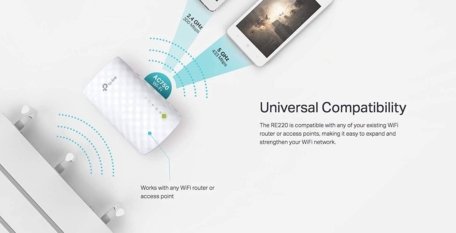 - Extend Wi-Fi Coverage - Boost Internet Wi-Fi coverage up to 1200 square feet and connects up to 20 devices - Compatible with Wi-Fi Router, Gateway, Access Point (2.4GHz - 300Mbps ; 5GHz - 433Mbps)