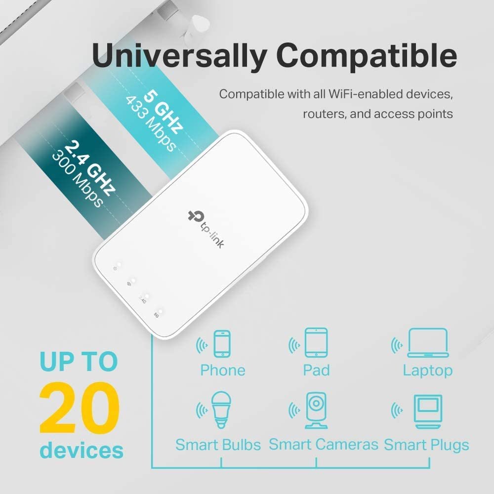- Extend Wi-Fi Coverage - Boost Internet Wi-Fi Coverage up to 1200 Square feet and connects up to 20 devices - Compatible with Wi-Fi Router, Gateway, Access Point ( 2.4GHz - 300Mbps ; 5GHz - 433Mbps )